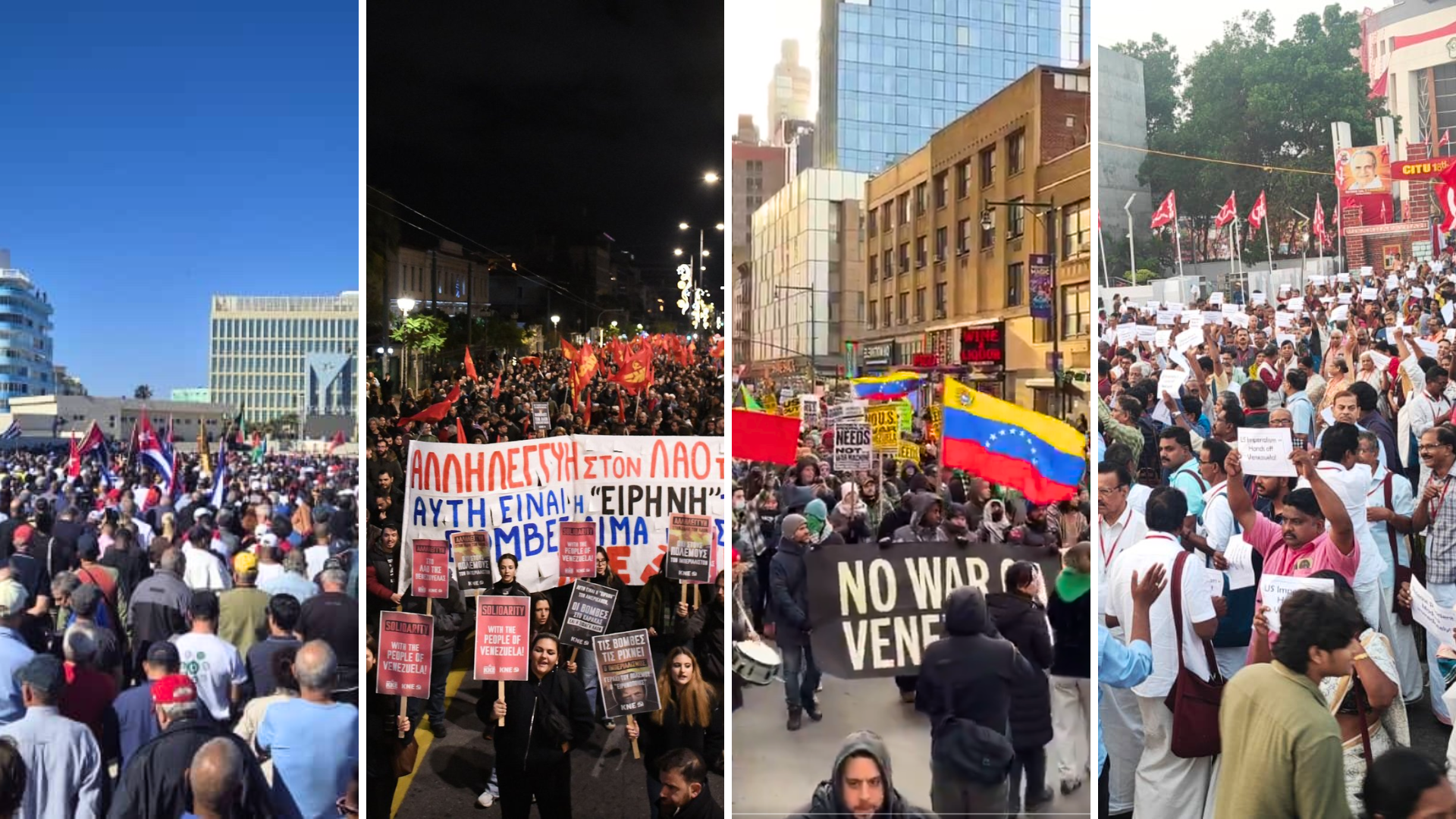 No mesmo dia da agressão imperialista na Venezuela, protestos em solidariedade ao povo venezuelano e contra o imperialismo ianque ocorreram em Cuba, Grécia, EUA, Índia, entre outros países. Todo apoio à resistência do povo venezuelano!