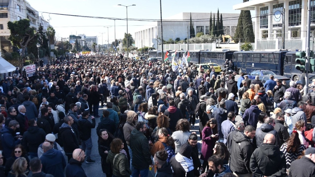 Milhares de comunistas, trabalhadores e a juventude grega organizaram um grande protesto em frente à embaixada dos EUA em Atenas, no dia seguinte ao ataque imperialista ao Irã.